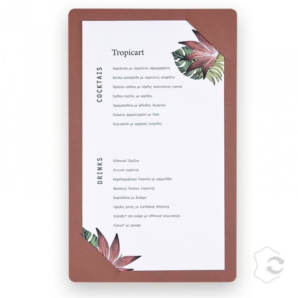כיסוי תפריט Elia עשויה מ־100% עור ממוחזר.