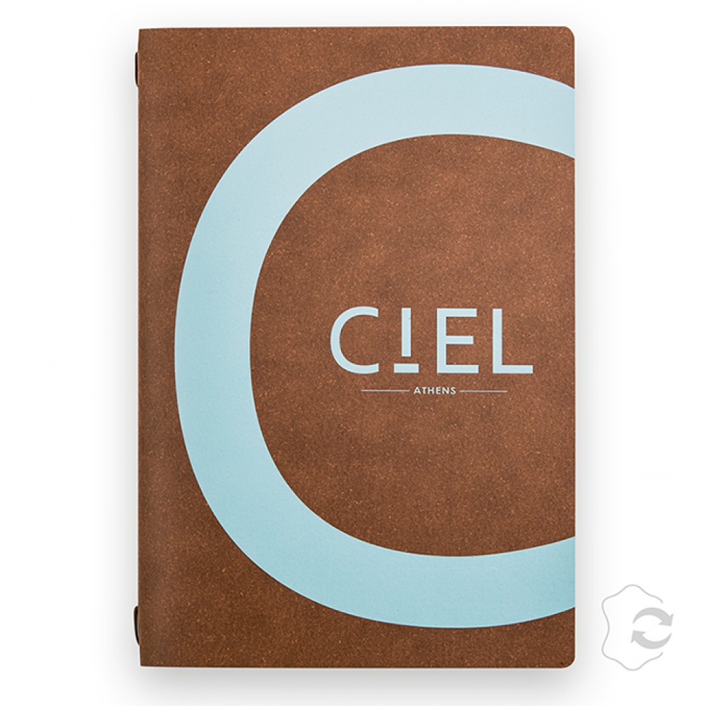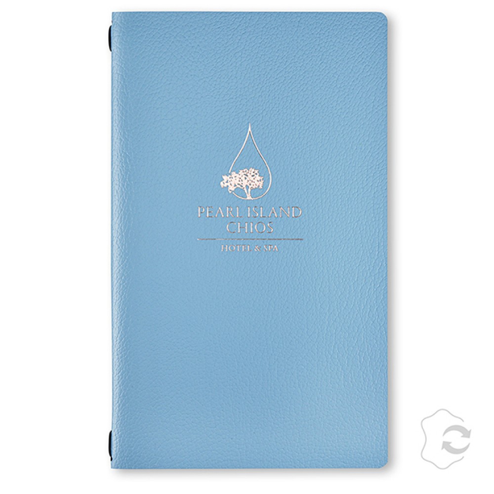 כיסוי תפריט עשויה מ־100% עור ממוחזר.