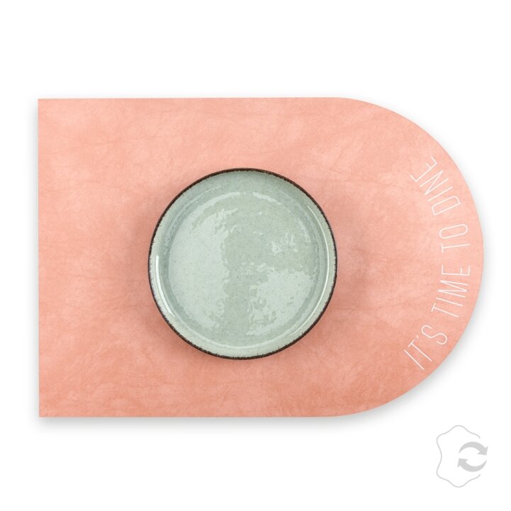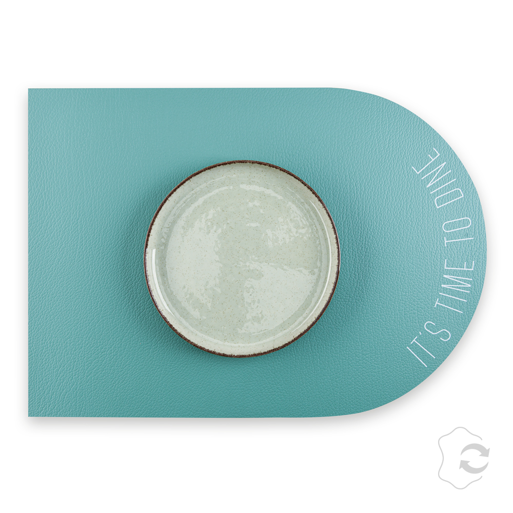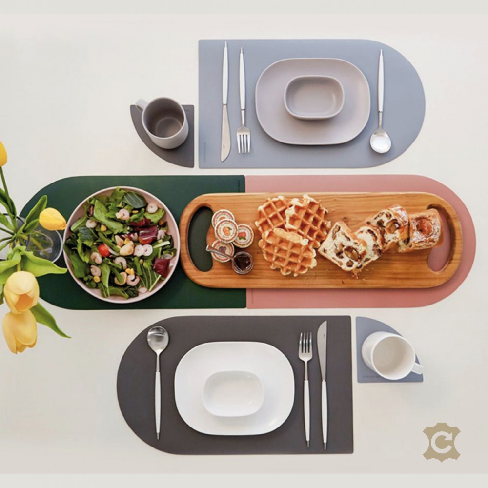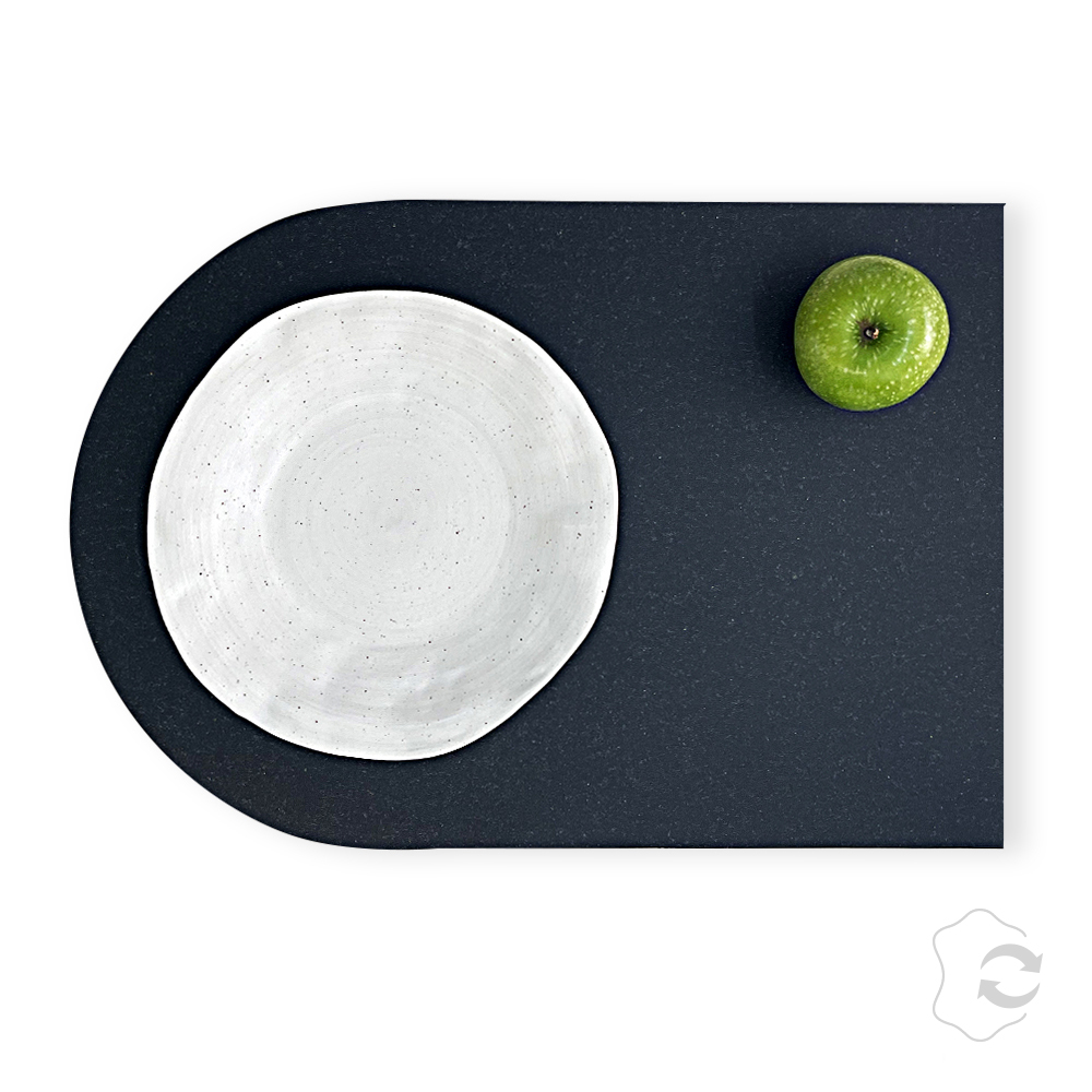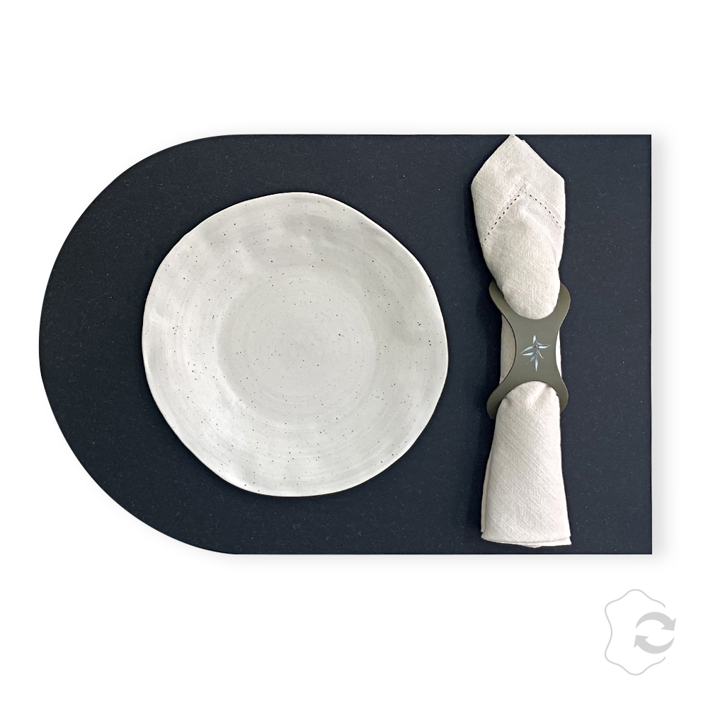 פלייסמט חצי עיגול עשוי מעור ממוחזר ב־100%.