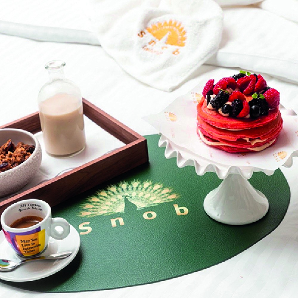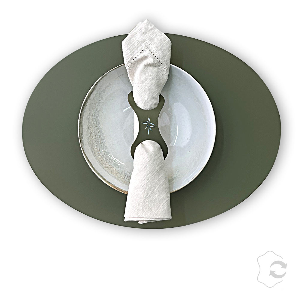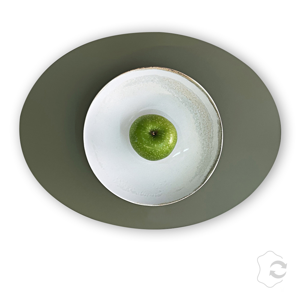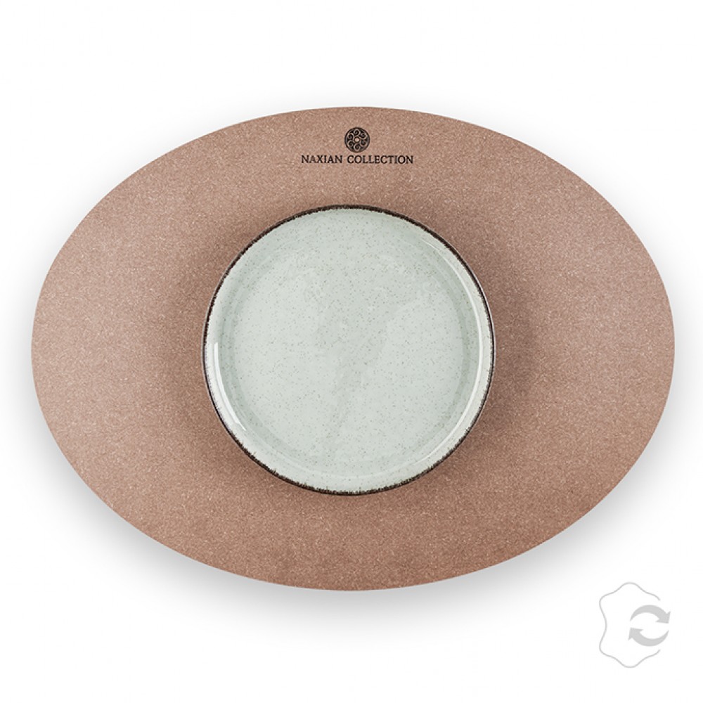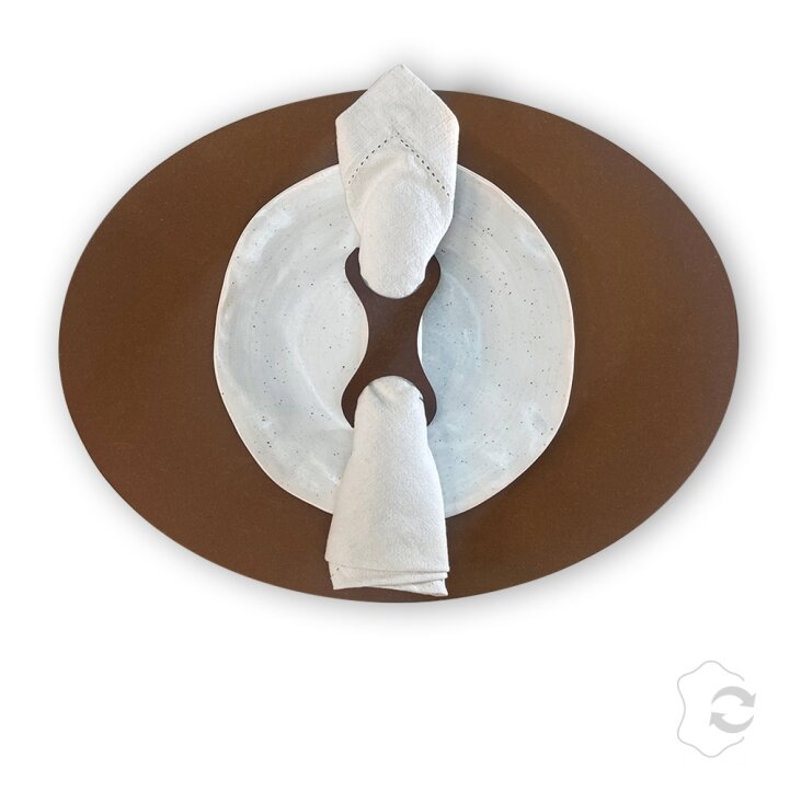 פלייסמט בצורת אובאלי, עשוי מעור ממוחזר ב־100%.